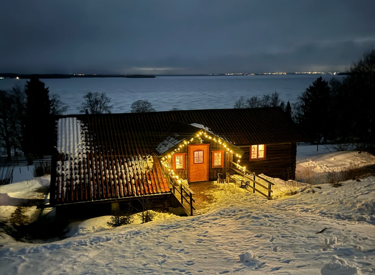 Här finner du en charmig stuga i lugn och naturnära miljö. Bastu och grillkåta på altanen med majestätisk utsikt. Ynka 50 meter ner till vattnet. Det finns också ett brett utbud av aktiviteter i området. Stugan har sjöutsikt, fiske, skog, fjällvandring och badmöjligheter runt husknuten. Stugan är mysigt inred med alla bekvämligheter ni kan tänkas behöva. Det finns en eldstad som gör stugan om möjligt ännu mysigare. Wifi finns.