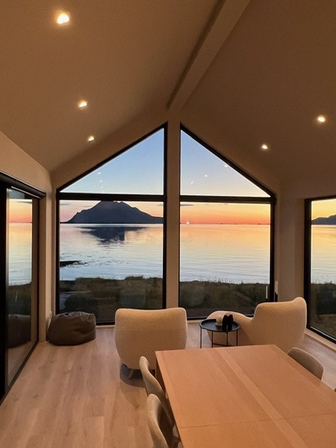 This beautiful boathouse placed right next to the ocean will give you a once in a lifetime experience. Imagine waking up to an amazing view with all the privacy you could imagine, overlooking the fjord surrounded by the mountains. Cuddle in under warm blankets in the evening, let your heart rate slow down and enjoy the crisp air and the spectacular Norwegian nature. Travel back in time without electricity, and spend the night with water only from the stream and an outdoor toilet.