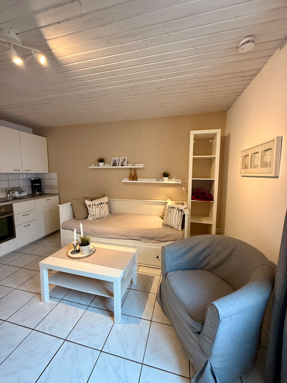 Dieses helle und moderne Studio befindet sich im Obergeschoß eines Hinterhauses in der wenig befahrenen Waitzstraße. Es ist die einzige Wohnung in diesem Gebäude. Bei Buchung von mehr als 6 Tagen: 10% Rabatt Bei Buchung von mehr als 27 Tagen: 30% Rabatt Die Wohnung liegt zentral und alle wichtigen Orte Flensburgs sind zu Fuß leicht zu erreichen (Bahnhof 600m, Uni 1200m, Zentrum Südermarkt 700m, Rote Straße 600m, ZOB 900m, Hafenspitze 1200m).