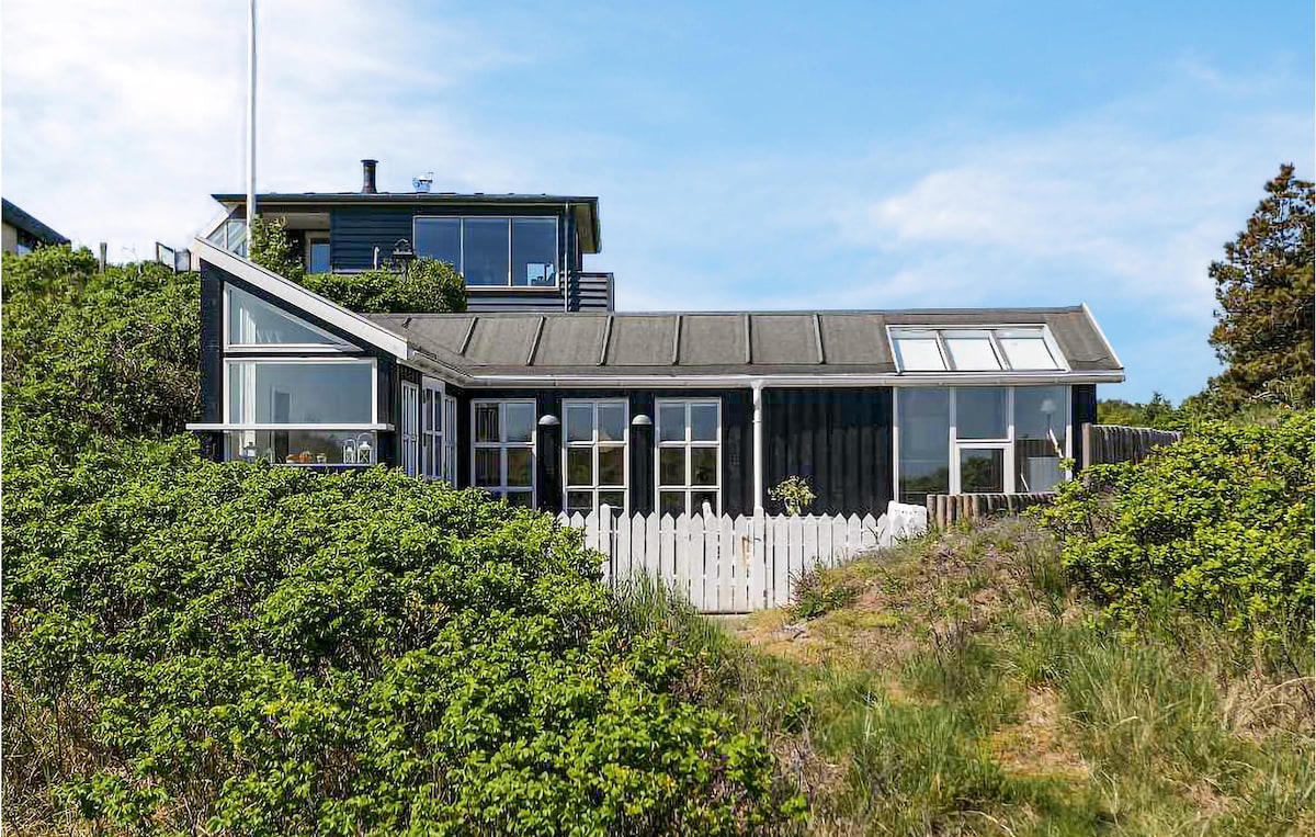Med et fantastisk view over marker og hav kan du nyde ferien og et koldt glas rosé, mens børnene leger i haven eller hopper på trampolinen. Bare 300 meter væk er den lækre og børnevenlig sandstand, hvor I kan nyde en is fra ishuset og bade dagen lang. Huset har 110 kvm stor terrasse 180' rundt fra øst til sydvest. Helt nyt badeværelse, et flot moderne køkken samt bryggers med vaskemaskine. 3 soveværelser; 1x King size double bed 1x Queen size double bed 1xKøjeseng med 2 sovepladser på 90x200