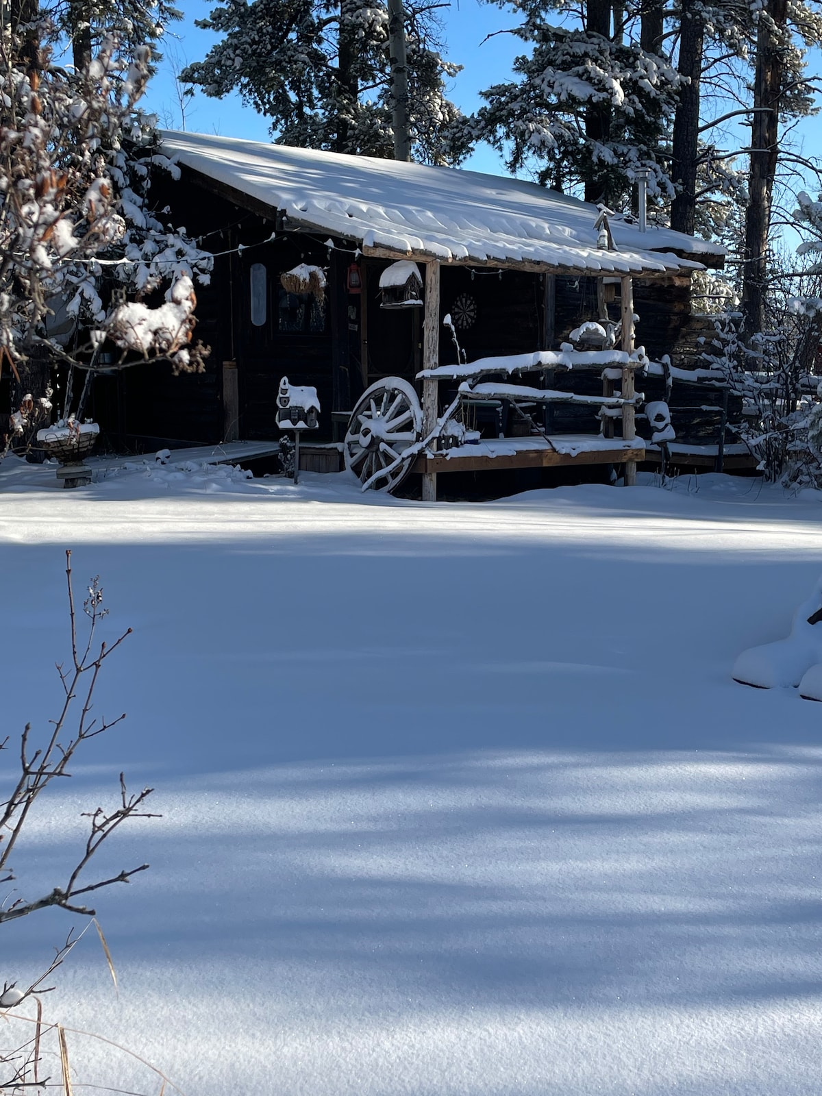 Escape to a world of enchantment at our cabin nestled in the trees!!! Endless outdoor activities begin right outside the door from hiking to star gazing. Inside the cabin enjoy a cozy wood-burning stove while unplugging & reconnecting. With a well-stocked selection of books & games, you'll have plenty of options for entertainment during your stay. Relax outside beside a campfire surrounded by breathtaking views of starry nights & experience the magic of this extraordinary natural setting.