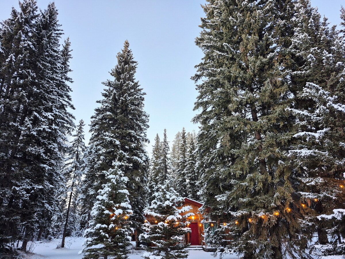 Spend the night in a unique setting and company. Kilyan and Anna live with nearly 30 sled dogs at the Rocky Wolf Ranch. The trapper's cabin sleeps two and is lovingly furnished. With a view of the horse paddocks and dog kennels, you can enjoy breakfast or sunbathe on the veranda. The ranch is located directly on Prairie Creek. Here you can fish, swim, or simply enjoy nature. Programs with the sled dogs are available as an option.