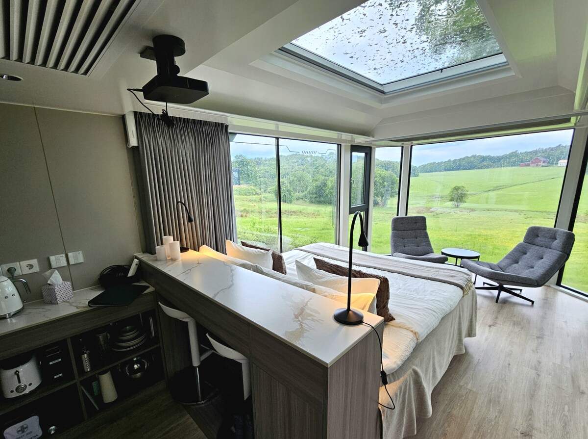 Nybyggt tiny house - perfekta boendet för dig som vill få tillgång till ett boende utöver det vanliga! Huset bjuder på en spektakulär utsikt med skogen som närmsta granne. Trots sina få kvadratmeter finns både enklare kök, matplats, WC samt en bekväm och avskild sovplats med säng om 140 cm. Utanför finns också både avskild balkong, egen utedusch med varmvatten och kallvatten och en större grusad uteplats med utemöbler och grill.