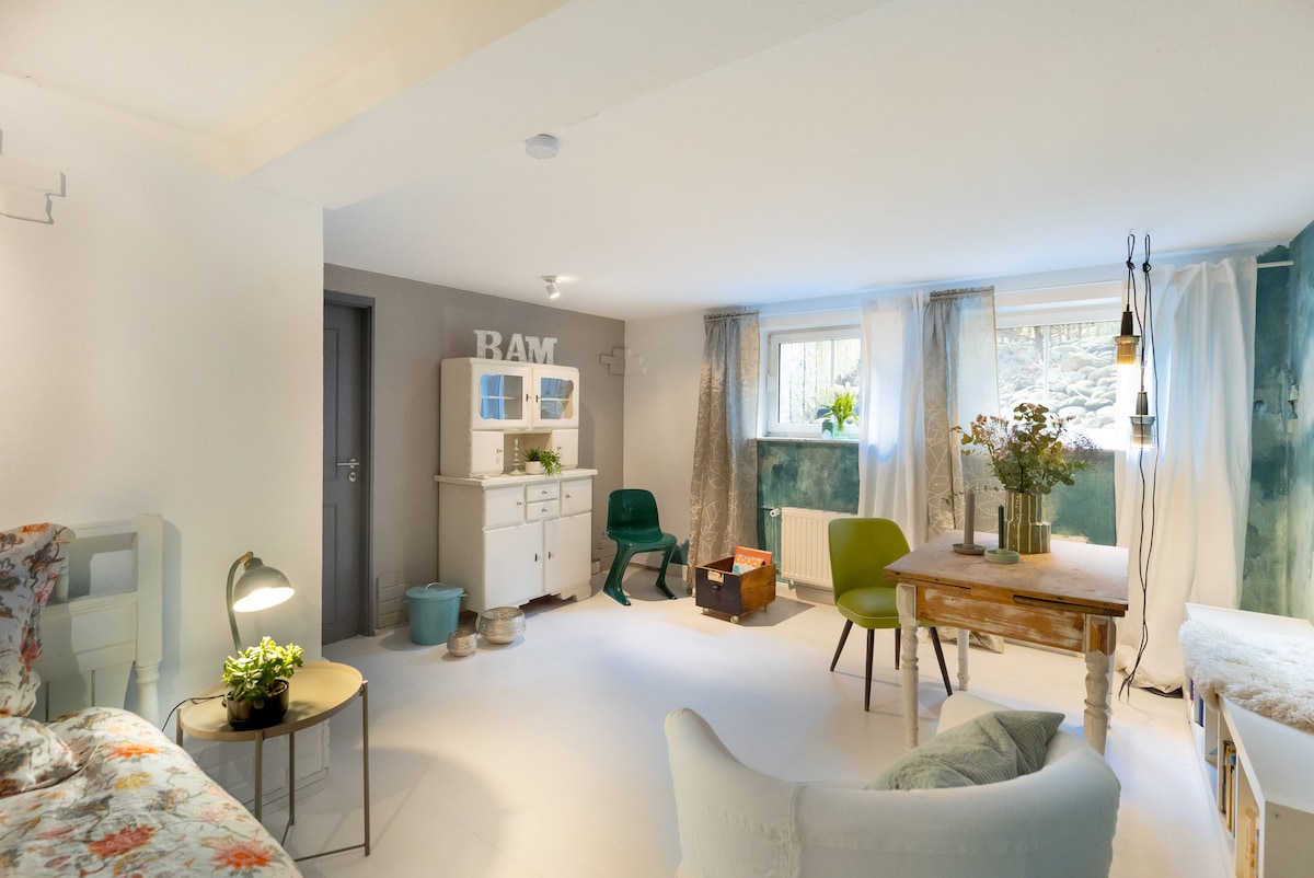 Meine Unterkunft ist gut für Paare, alleinreisende Abenteurer und Geschäftsreisende. Central und ruhig gelegenes helles Paterre Apartement im Einfamilienhaus mit separatem Eingang sowie eigenem Duschbad und Pantry - Küche . Das Zimmer verfügt über ein Bett von 140 x 200, 2 Sessel u. Schränke. Die Pantry-Küche für einfache und schnelle Mahlzeiten ist voll ausgestattet mit Mikrowelle, Kaffeeautomat, Wasserkocher, Toaster, Kühlschrank, Geschirr und Waschmaschine. Sitzecke im Garten ist eingerichtet