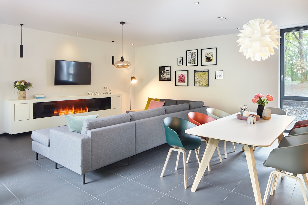 Das Hygge Hus bietet auf 105m² drei Schlafzimmer mit je zwei Schlafplätzen, ein Duschbad und eines mit Badewanne sowie einen großen Küchen-Wohnzimmerraum inklusive Kamin. Es gibt eine Sandkiste, eine große Schaukel sowie zu zwei Seiten Holzterrassen mit hochwertigem Holzmobiliar. Dank eines umlaufenden Zaunes können Kleinkinder einem nicht entwischen. Kinderstuhl und Kinderreisebett können bei Bedarf genutzt werden. Alle Fenster nach hinten sind bodentief.