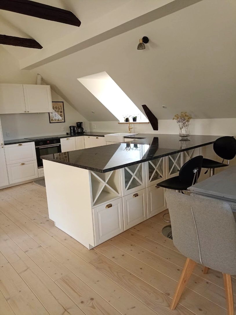 Fantastisk beliggende hus 90 meter fra vandkanten! Privatunterkunft! Mageløs udsigt og masser af indvendig hygge. Alle moderne faciliteter, med brændeovn og klimaanlæg. 60 m2 fordelt på 2 etager. Øverst en stue med åbent køkken. Nederst et soveværelse med 180x200 seng, og åbent kammer med sovesofa 120x200. Dette er et transitrum. Badeværelse. Trådløst internet, samt TV. Alt i køkkenudstyr og opvaskemaskine. 2 terrasser, Der er en 2-kajak til rådighed. Cykler er også til rådighed.