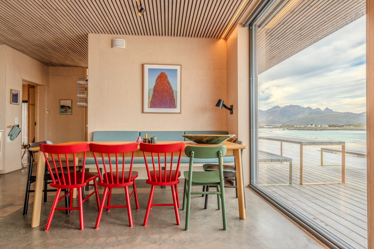 Experience the enchantment of Lofoten in this cabin, a beachfront escape nestled between stunning mountain landscapes and the captivating ocean. See the midnight sun shining above the arctic ocean. Above you the northern lights dances through the winter. This three-bedroom cabin offers an idyllic retreat with direct beach access amidst the magnetic allure of Lofoten's natural beauty. Cleaning is included!