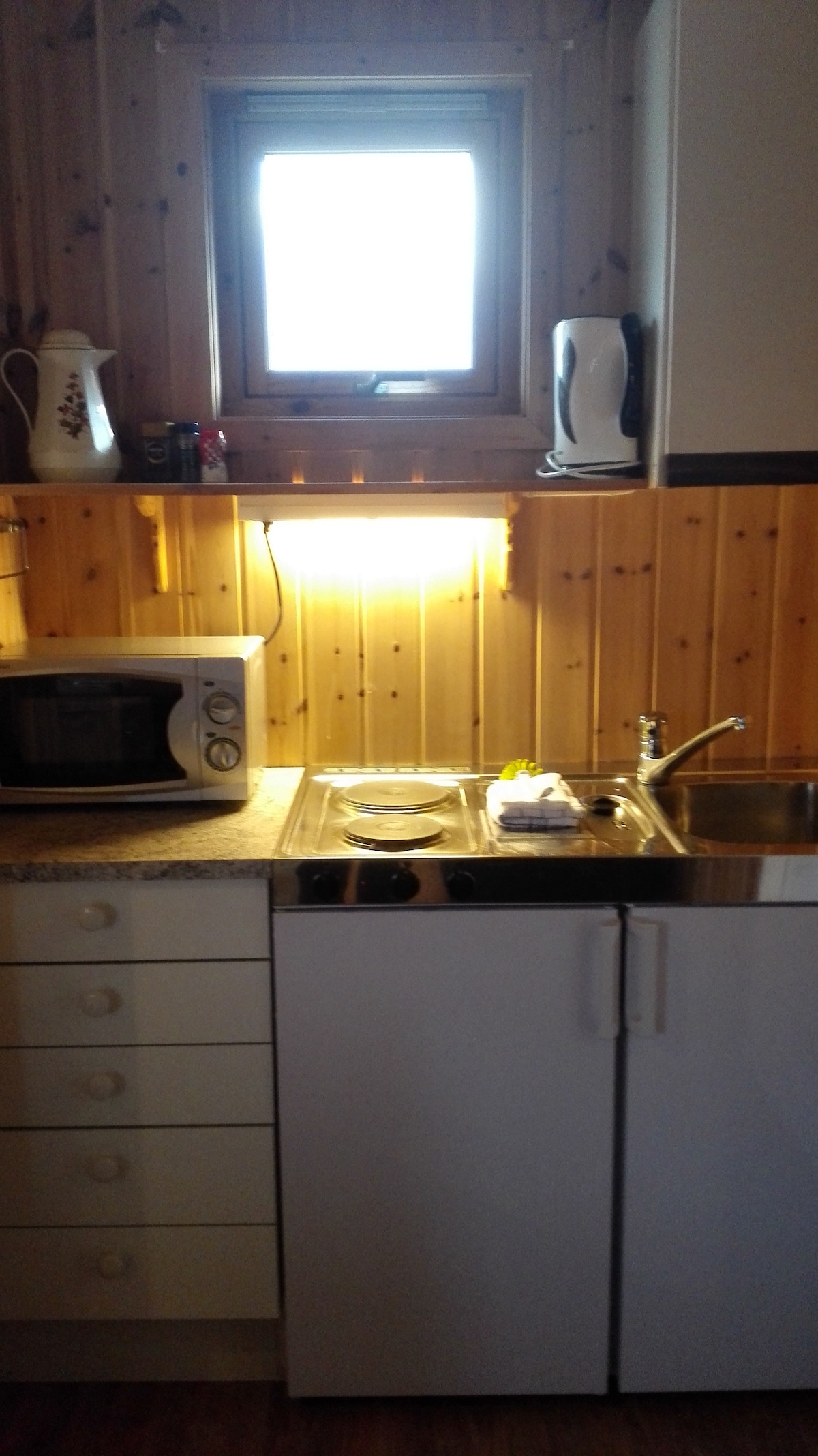 Welcome to Vestvågøy in Lofoten, and welcome to be our guest. We rent out a charming and practical guesthouse, located in our back yard. Our guesthouse has one bedroom, and there is a sleeping sofa in the living room. The guesthouse has a nice, big living room, a simple kitchen area (with a refrigerator, small cooking oven, microwave and a sink, and the equipment that is needed for simple cooking), a bathroom with toilet and shower, and a storage room. There is also a washing machine available.