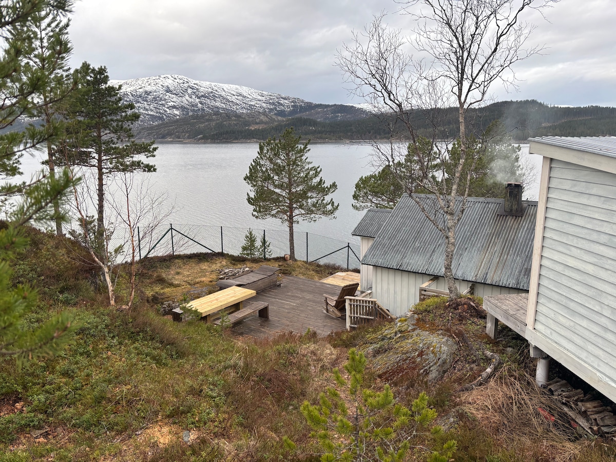Your own private cabin, with the ocean right outside your window. Inside you find three bedrooms, a living room, kitchen and a bathroom. Go outside and enjoy the view from the sea side patio, complete with furniture and a campfire pan. Depending on the season and weather you can see eagles and other birds fly by, or just enjoy the stunning aurora. It´s a 3 minute walk to our small city center with grocery stores, sports shop, a liquor store, pharmacy, hair dressers and a gas station.