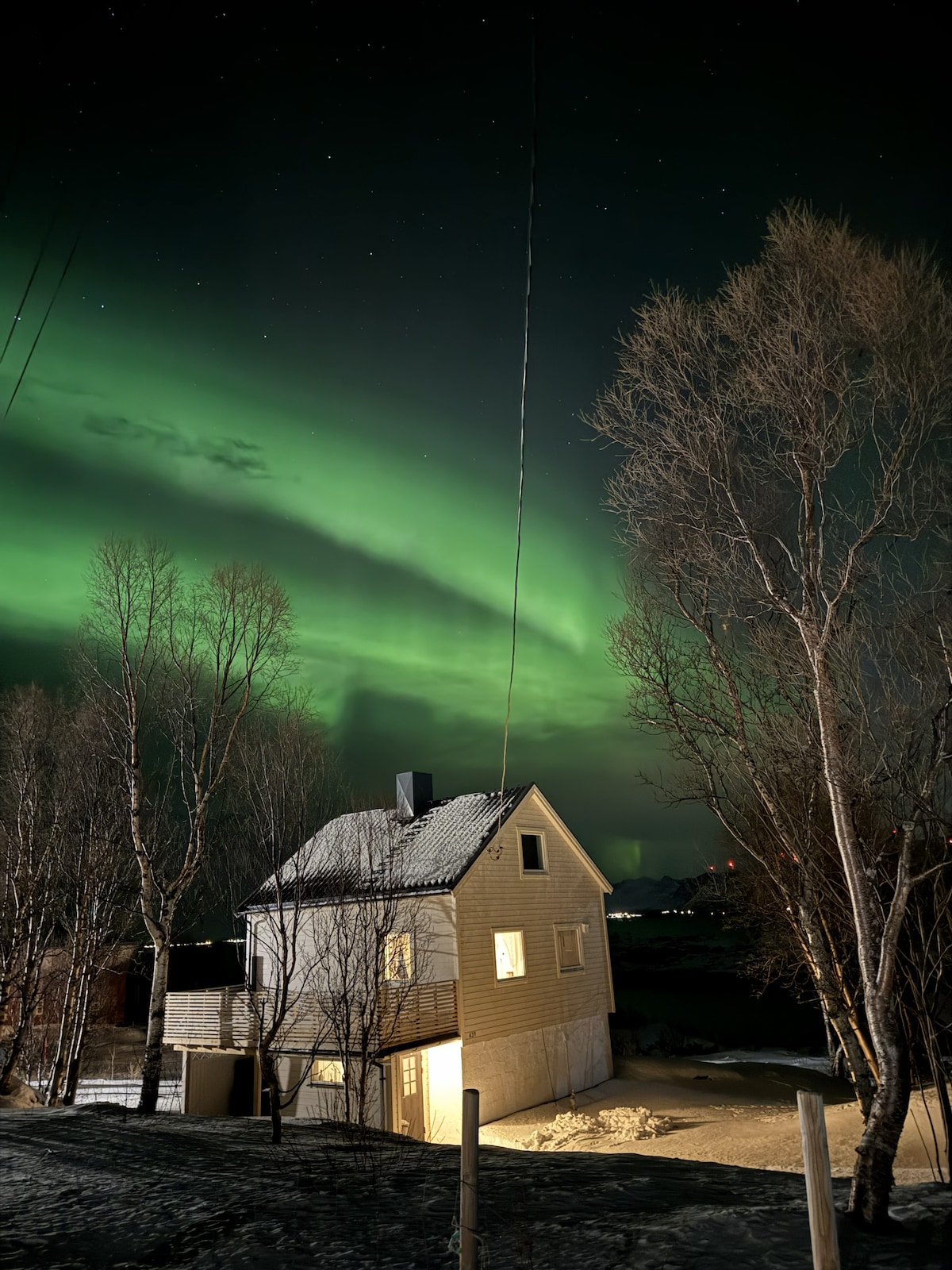 Enjoy the magic of the aurora from the panoramic view balcony or even from the dinner tabel (September- April) Warm and cosy timberhous from the late 1800s with a big garden located in calm sorundings in the beginging of Lofoten- peace and quiet guaranteed!