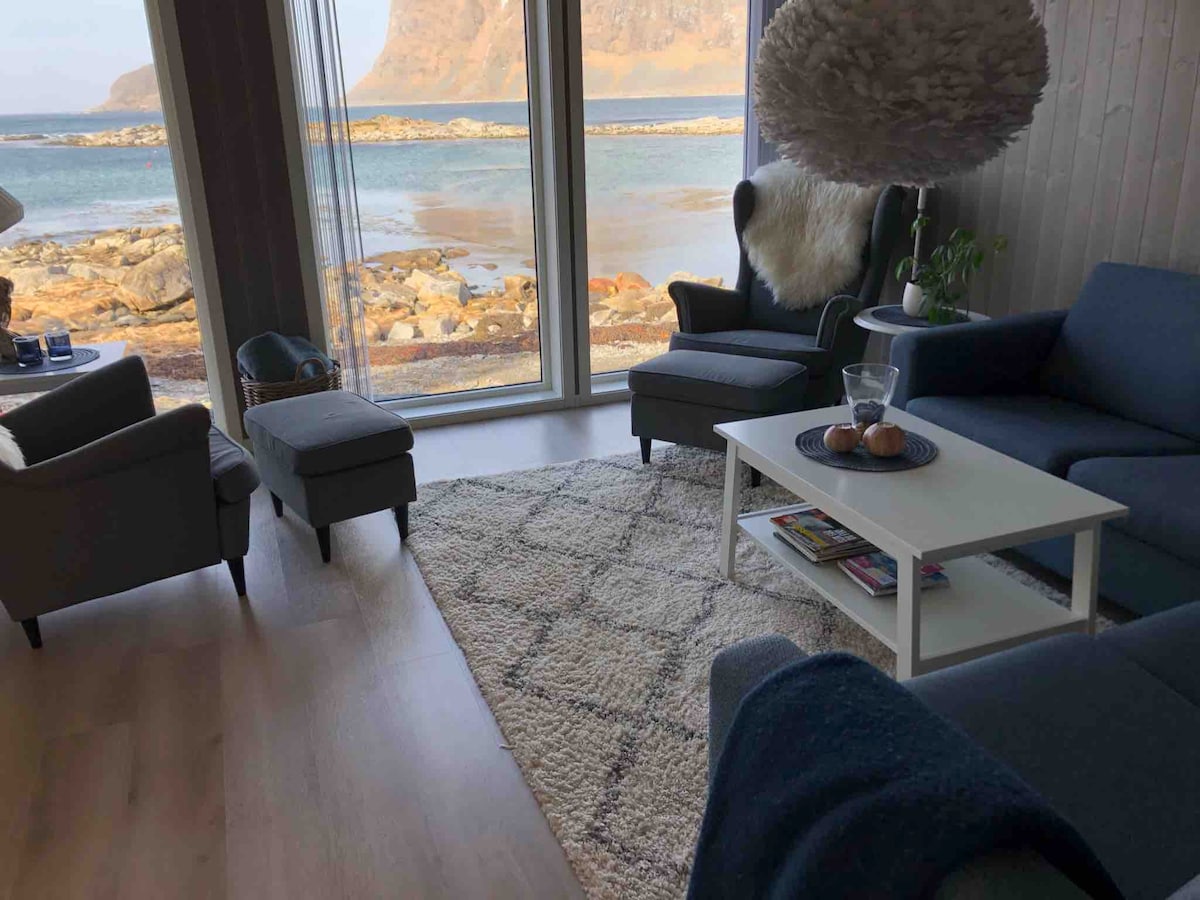 Newly built cabin with a high standard and its own shoreline located in the middle between Henningsvær and Svolvær in Lofoten. The cottage is secluded located without neighbours. Walking distance to mountains and beach. Good opportunities for fishing for sea trout right outside the living room door. Cross country slope 100m from the cottage. Sun from early morning to late evening. The perfect starting point for an active and relaxing Lofoten holiday!
