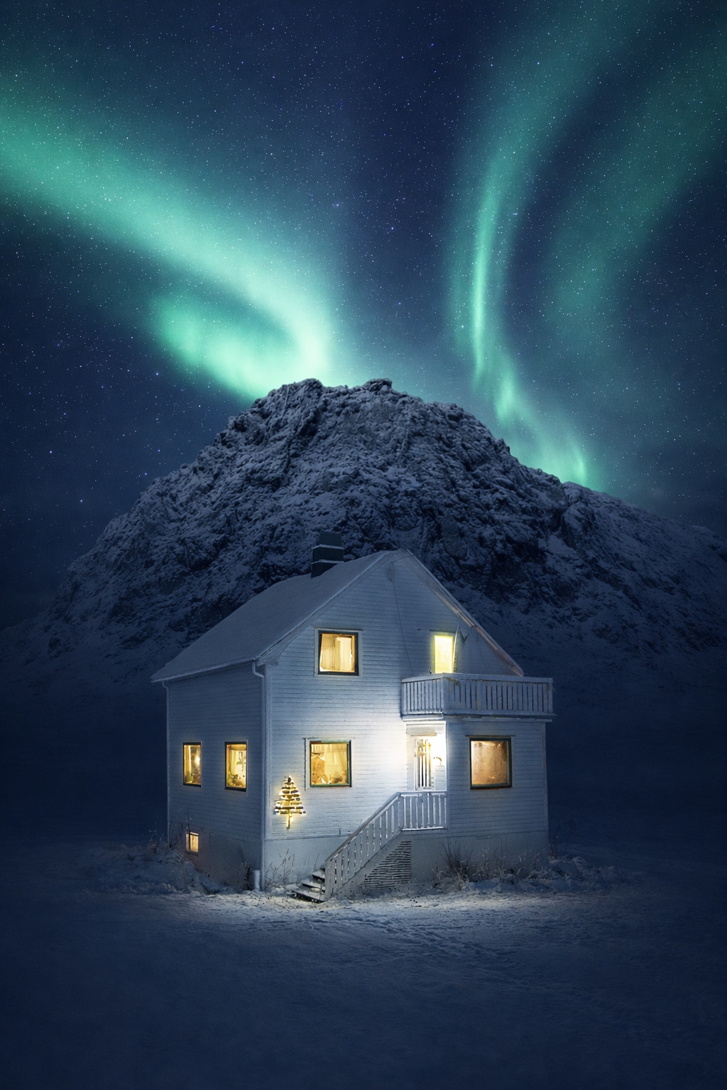 极光下的房子。免费罗弗敦(Lofoten)导游!