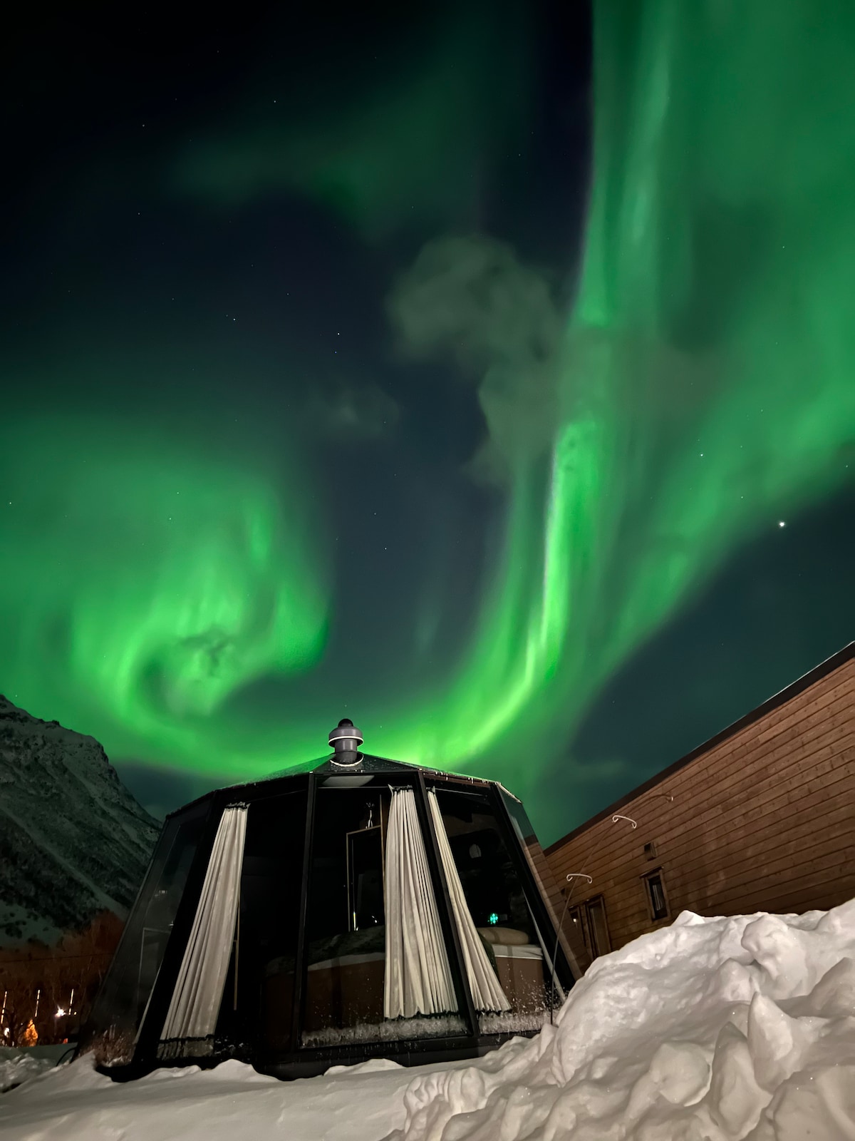 Hytten ligger på et berg bare 50 meter i fra havet med en fantastisk utsikt over Lyngenfjorden med Lyngsalpene i bakgrunn. Utsikten er unik! Hytten ble tatt i bruk i 2016 og har alle fasliteter både for korte og lengre opphold. Hytten er lun og varm, med peis i stuen, varmegulv i alle oppholdsrom og aircondition/varmepumpe. Hele fronten av hytten består av glass fra gulv til tak. Her finner du ro og velvære som gjør godt for kropp og sjel. For ekstra nytelse kan man ta seg ett bad i Jacuzzi.