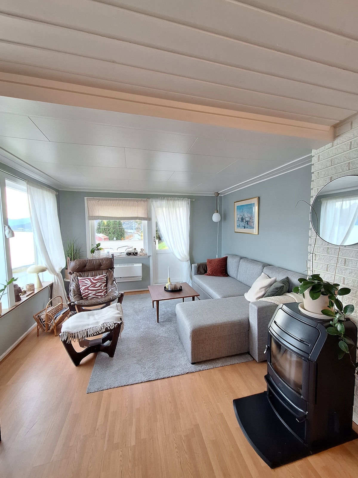 Modern and cozy home, overlooking the beautiful Lyngen Alps. The best thing about this peaceful retreat is the location, right in the middle of nature, secluded and only minutes from beautiful hikes, world class skiing. The meadow where the house sits, extends all the way down to the pebble beach. In the winter, watch the northern lights above the lodge. In the summer, sit on the terrace all night enjoying the midnight sun. The house was built in 2016, well-equipped, very comfortable beds.