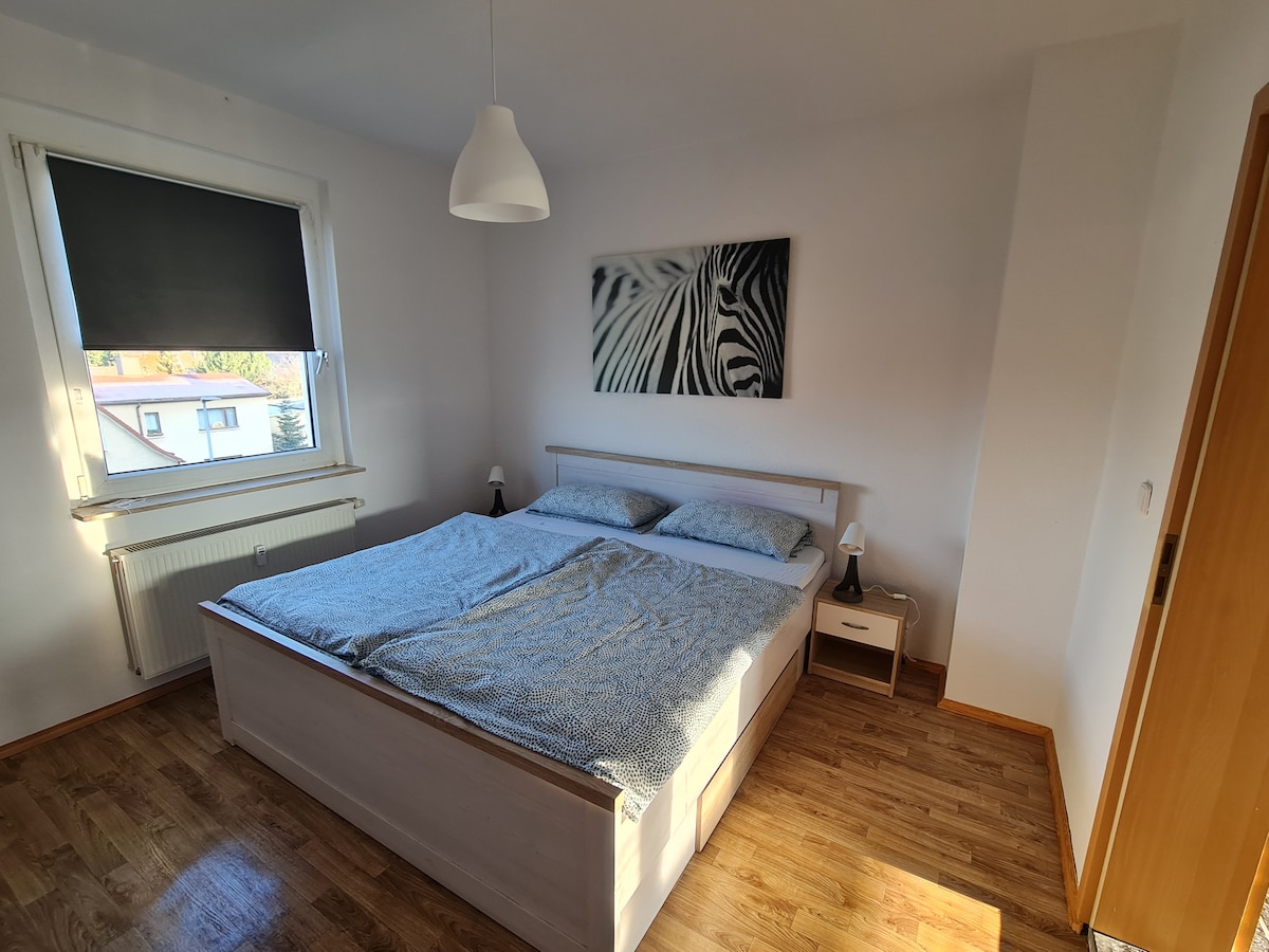 Die Unterkunft befindet sich 50 m entfernt von der Bushaltestelle in Burkartshain. Der Ort ist von Wurzen innerhalb von 10 Minuten erreichbar, über die Autobahn kommen Sie in 35 Minuten nach Leipzig. Es handelt sich um eine 3 Zimmer-Wohnung mit einer vollwertigen Küche mit einem Cerankochfeld, einem Backofen, Kaffemaschine, Toaster, einem Wohnzimmer, 2 Schlafzimmern und einem Tageslichtbad mit Badewanne. Eine Waschmaschine steht Ihnen für Ihre Wäsche zur Verfügung.