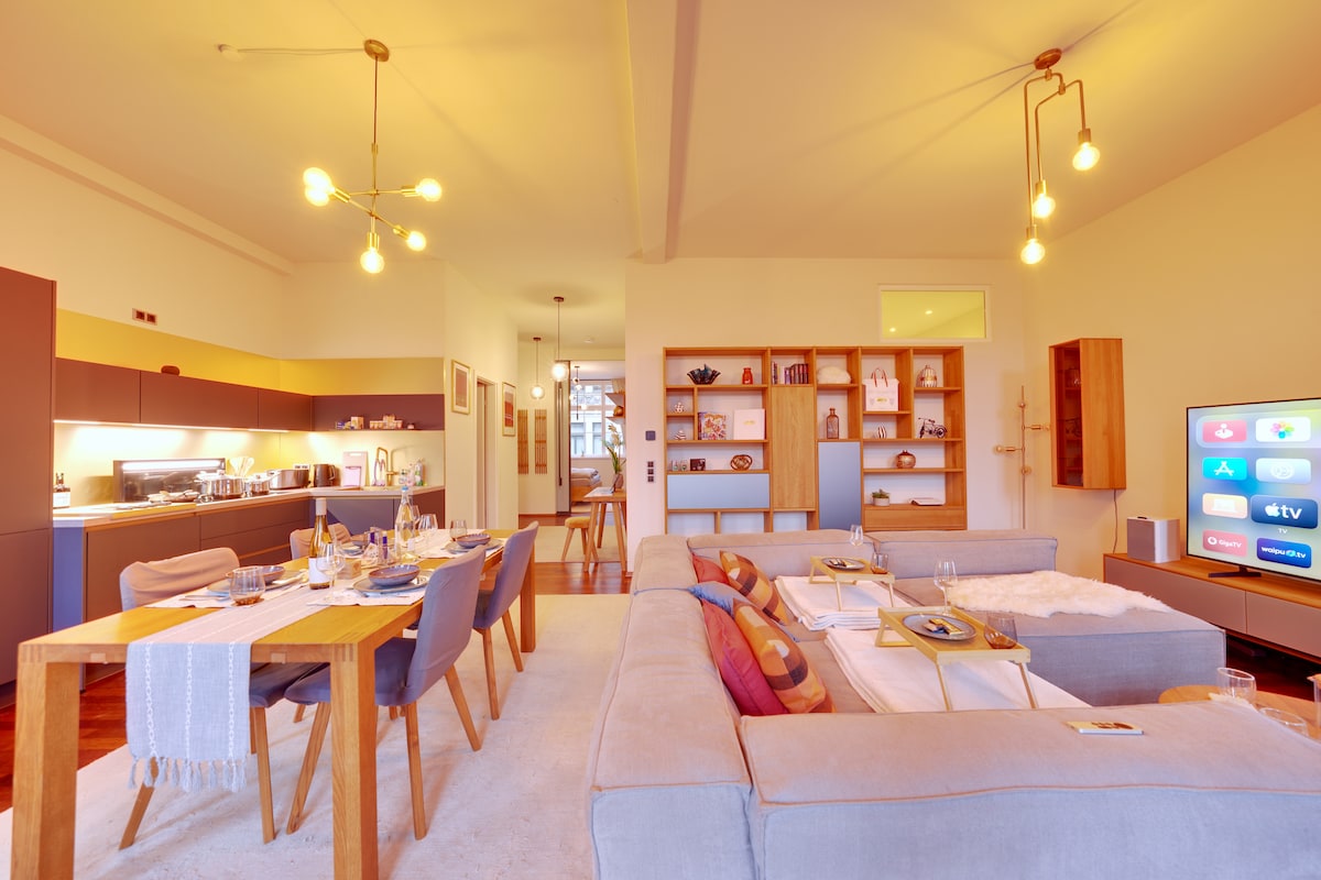 位于市中心的设计师阁楼公寓,带地下停车场