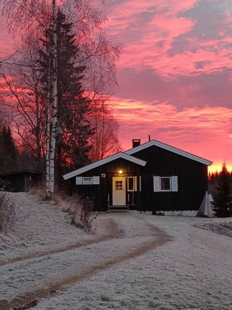 Hytta heter Vesla. Ligger sentralt på Sjusjøen.
