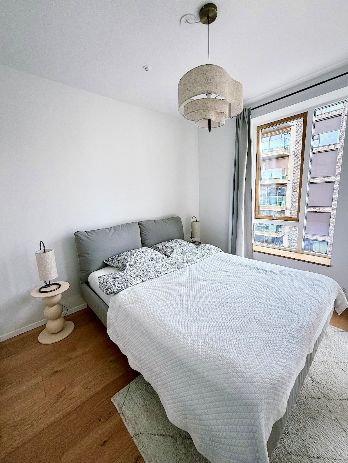 Welcome to our apartment nestled in the heart of the city. Experience unparalleled comfort and convenience in our beautifully designed home. The apartment is located on the 7th floor with spectacular view! Highlights: - Built in 2023 - 2 bedrooms - 2 bathrooms (bathtub + shower) - Elevator - Close to everything! - Balcony with lagre Weber BBQ - Sun from 10 am to sunset (summer) - Well equipped kitchen - Super comfortable beds - Full Sonos sound system - AC-unit (summer)