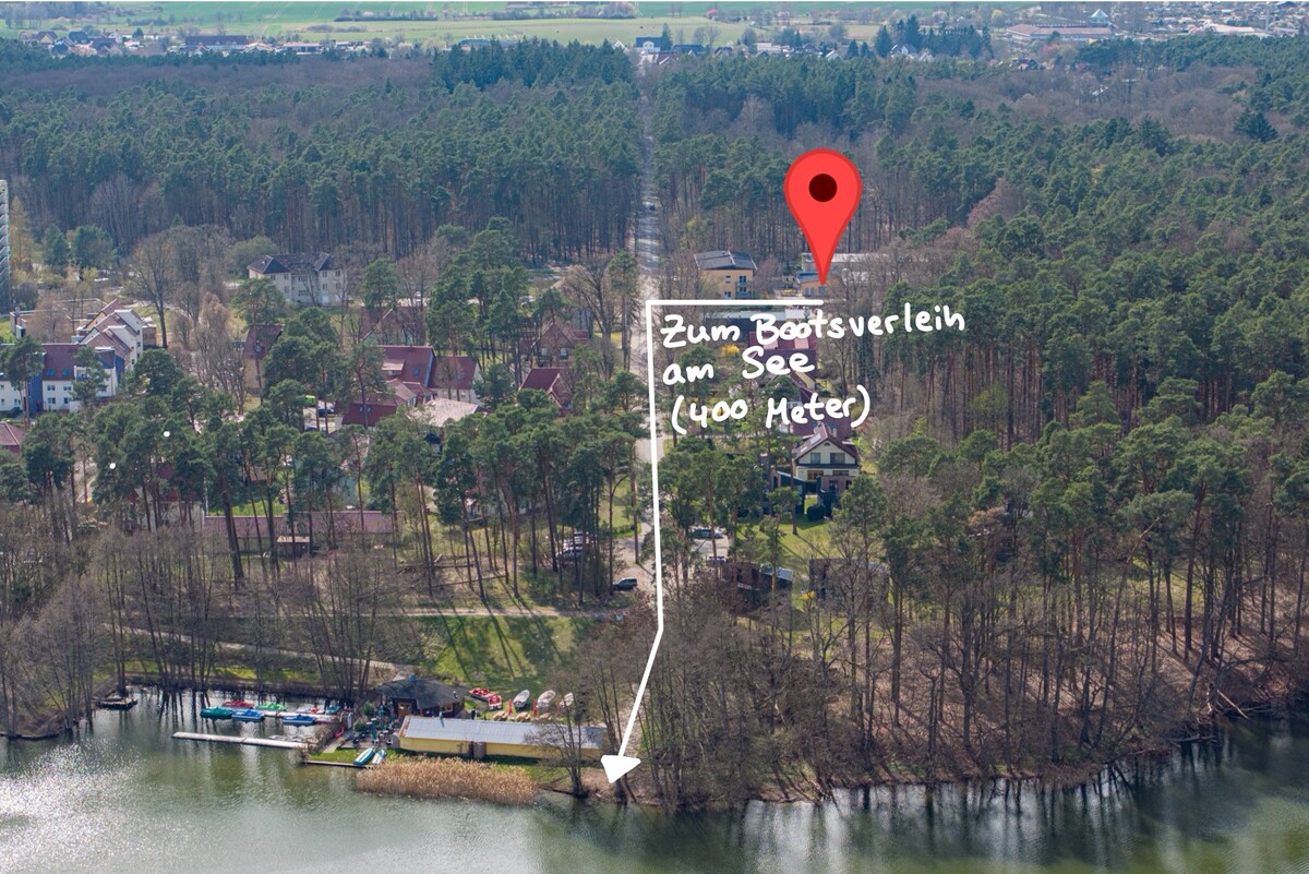 Bungalow am See, privater Steg, bei Berlin