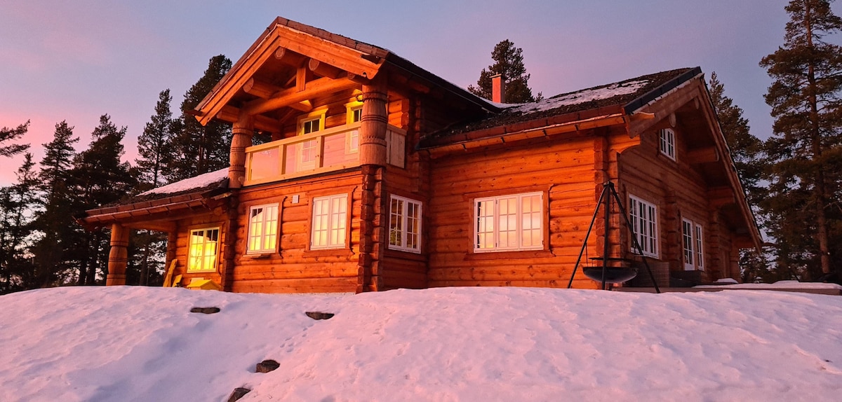 Stor laftet drømme hytte beliggende med fantastisk utsikt over Hardangerviddas tak til leie. Hytten har sol fra morgen til kveld! Hytten har høy standard og inneholder romslig kjøkken med alle hvitevarer, stor stue med spiseplass, gang, flislagt bad, 3 store soverom + hems og uthus. Panorama vinduer i fronten av hele stuen! Mange flotte stier og skiløyper rett bak hytten. Ski in til Uvdal alpinsenter. Hytten har parkering på tomten, og ligger i blindvei med bom. Ca. 30 min kjøring til Geilo
