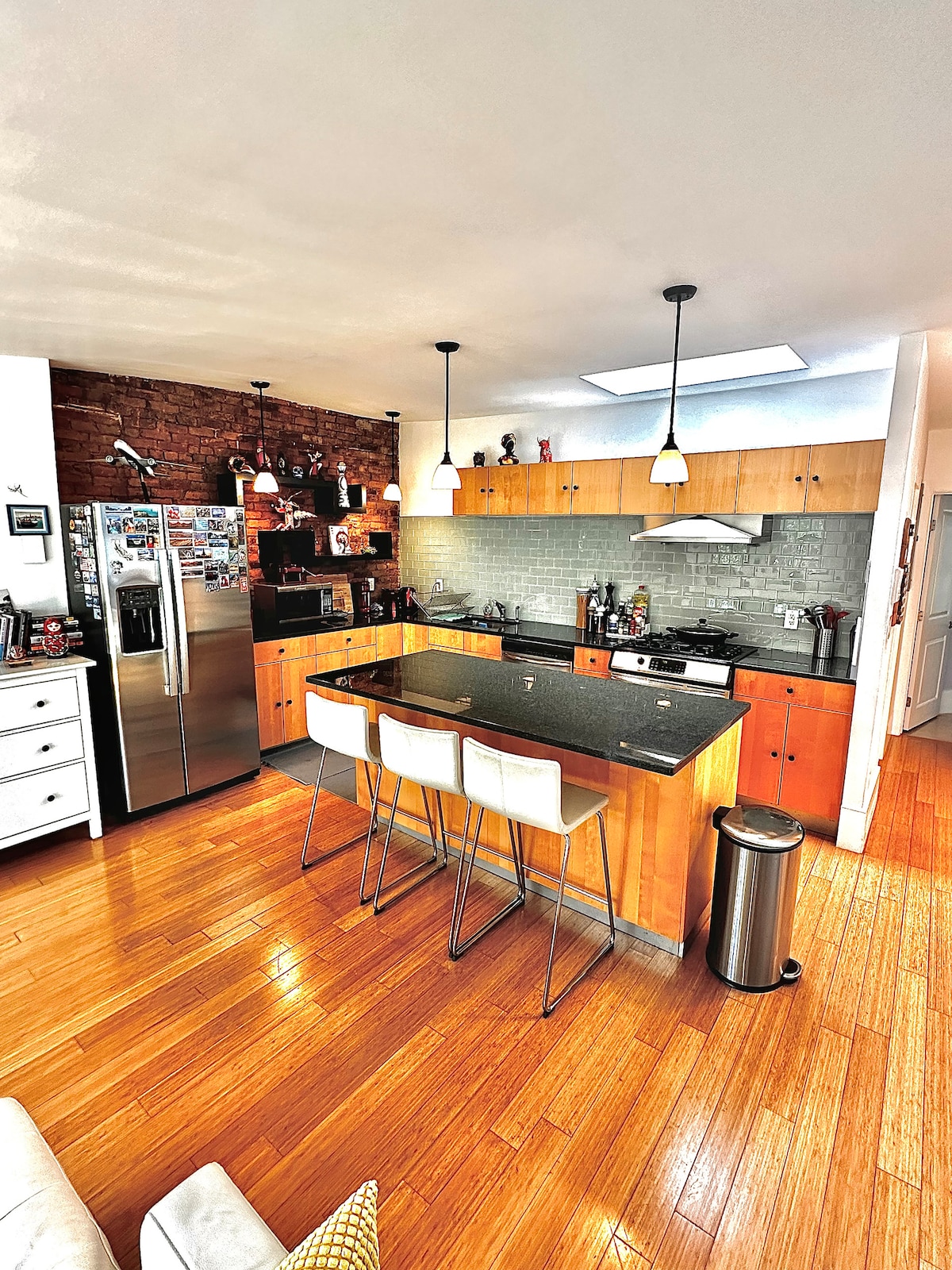 Centrally located penthouse unit in the heart of Boston SouthEnd. Abundance of sunlight, spacious living area, and open kitchen will make your stay a unique and charming experience in a historically preserved area. Ideal to explore the local neighborhood restaurants or walk to Boston commons, the ballpark, downtown or Newbury Street. The neighborhood is historic to Boston with classical brick stone look and the place itself is quite a gem, very quiet and open dining+living room style.