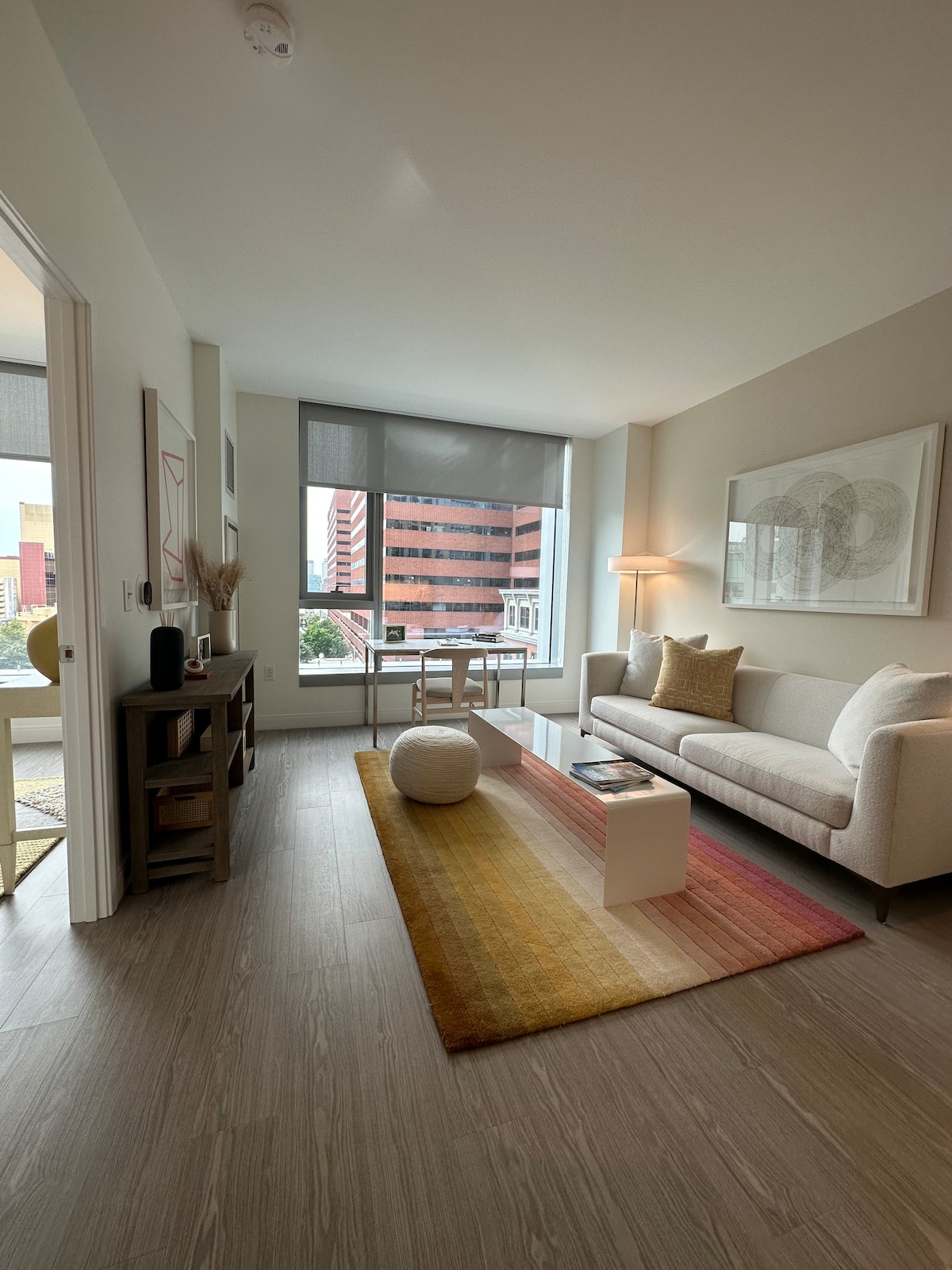 Enjoy a luxurious experience with a view at this centrally-located Home. 2025: Newly listed with brand new furnishings: new beds, chairs, countertops, etc. Perfect spot in the Allston BU neighborhood. Just next to the intersection of North Beacon Street & Cambridge Street. Plethora of amazing bars, lounges, cafes, & sandwich shops. Some of the best Korean & Mediterranean restaurants in Boston. Fast wifi. Smart TV. Laundry in unit. Gym. Parking spot. central AC/Heat. Elevator. And much more.