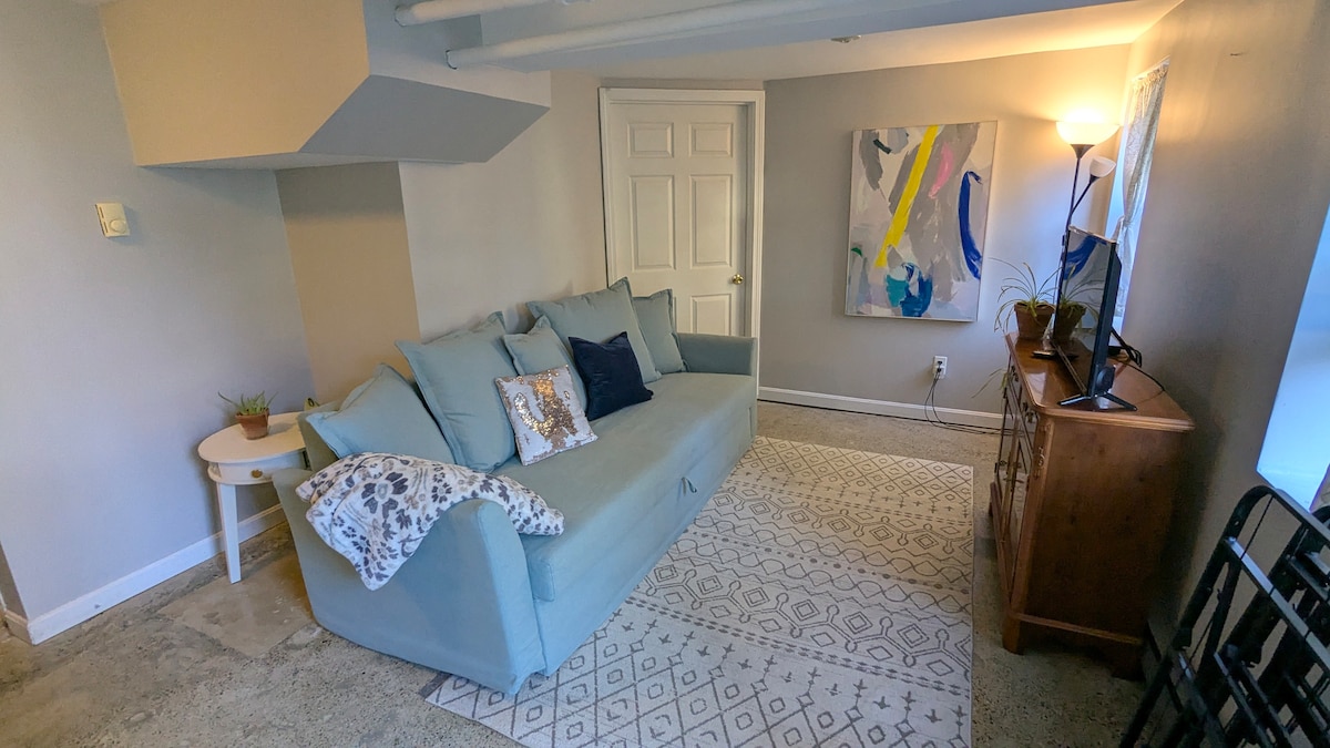 New couch! New towels and linens! Fresh paint! New flooring coming soon. This private apartment is part of my home but has a separate entrance, full bath, living room and private bedroom. We're in a family neighborhood close to the city, and very convenient for those visiting with a car.