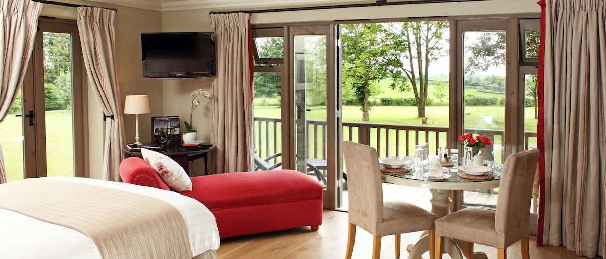 Our new Garden rooms are light and calming, backing onto fields.Deer, pheasants and barn owl’s can be seen most days.There is a patio at front and at the back where enjoy the view and also a BBQ available to cook your own food. We also have a Scandinavian BBQ HUT where our guests are welcome to spend a private evening of a cost of £20..There is lots of wildlife to be seen here and deer in our woods. Shops are 10 min away but a nice pub/restaurant 4 minutes by car. The trundle bed is 6ft !
