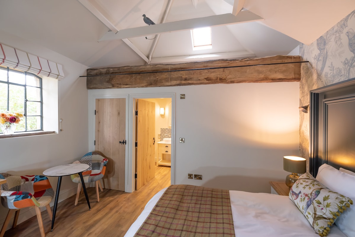 Kiln Cottage allows you to immerse yourself in a haven of wildlife and tranquillity, surrounded by beautiful countryside. Situated in the grounds of our 17th Century home, it is a private sanctuary, with high quality decor and all modern facilities. Wake up to the sound of birdsong whilst enjoying locally sourced artisan coffee and produce. This large vaulted space has an open-plan sitting and dining area, complete with separate fully fitted kitchen, bathroom and two luxurious double bedrooms.
