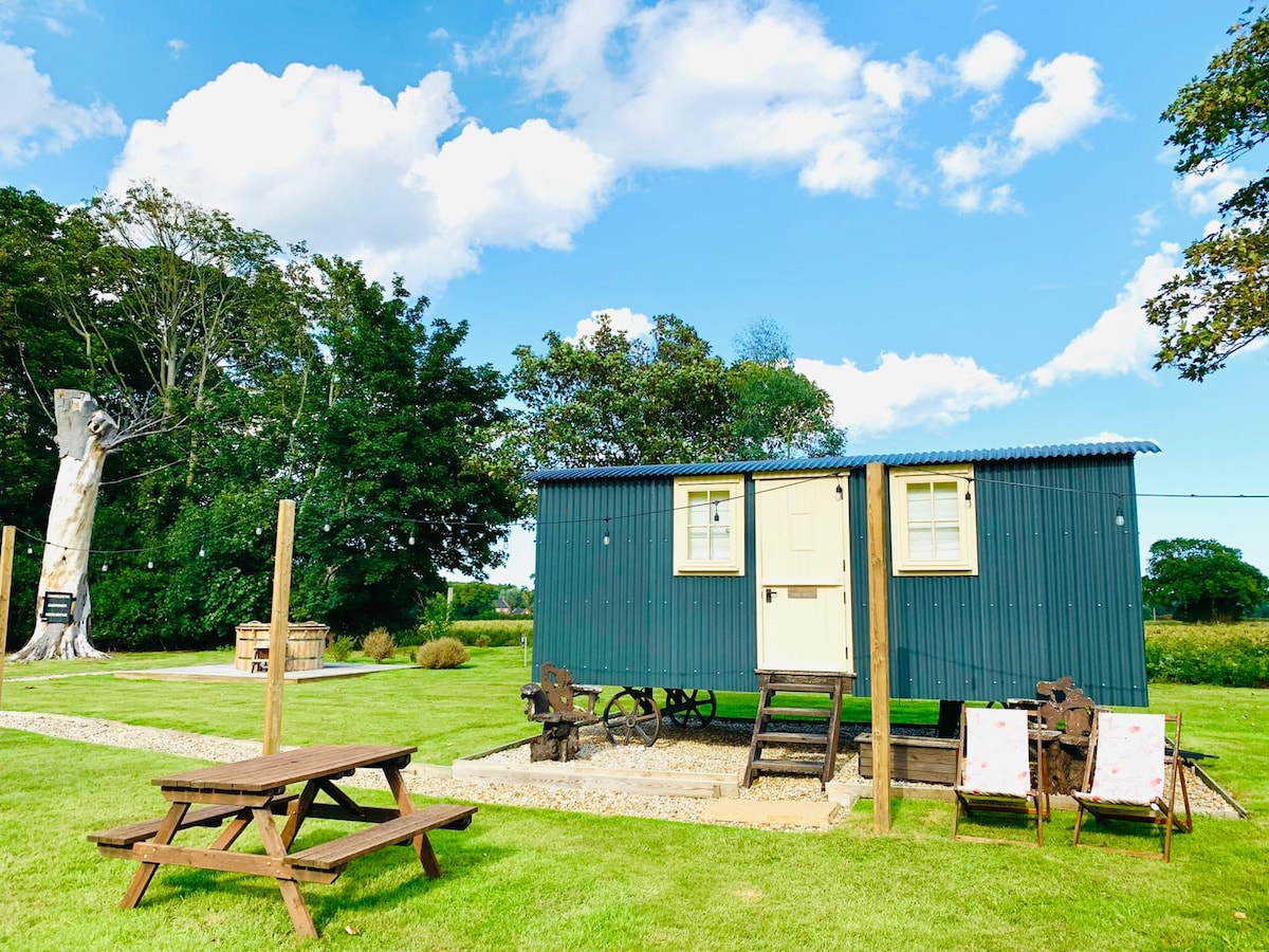 Our four luxurious shepherds huts with hot tubs are located on the edge of our field. You can enjoy the views and see the beauty this special place boasts from sitting in your own hot tub. Take in the tranquility and ever changing countryside scenery our village has to offer. Outside each hut you have a decked patio area with seating and a covered decked area with additional seating and bbq. Our family have worked Berry Hall Farm for over 100 years! One hut onsite allows dogs!