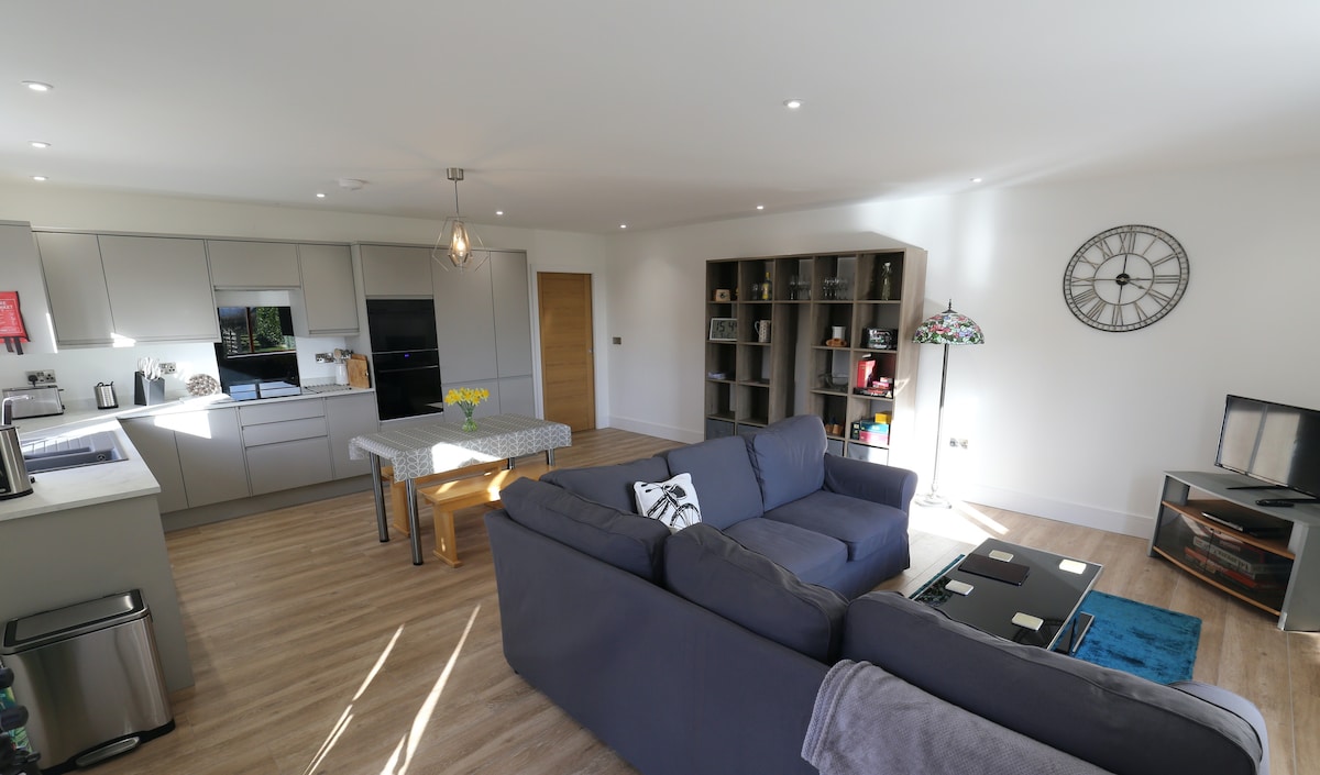 The Snuggle is a newly converted, immaculately presented, "bolt-hole for two, tucked away in a peaceful location with lovely far-reaching panoramic countryside views. ‘Small but perfectly ‘formed hideaway has been carefully designed to provide comfortable living space, with ample storage space, a well-equipped kitchen, comfortable bed and contemporary shower room. There is a terrace area with outside table and chairs, enjoying gorgeous open rural views. Dogs under supervision at all times 🙏