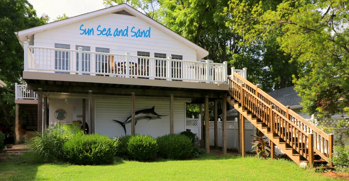Welcome to Sun Sea and Sand, a Caribbean theme in Hampton, Virginia. Sun, Sea and Sand is a beautiful, waterfront, second story, two-bedroom, one-bath guest house located on a private drive providing lots of privacy including your own private entrance as well as stairs leading from your private balcony directly to the waterfront. High-speed fiber-optic wifi and cable with blue ray player provided.