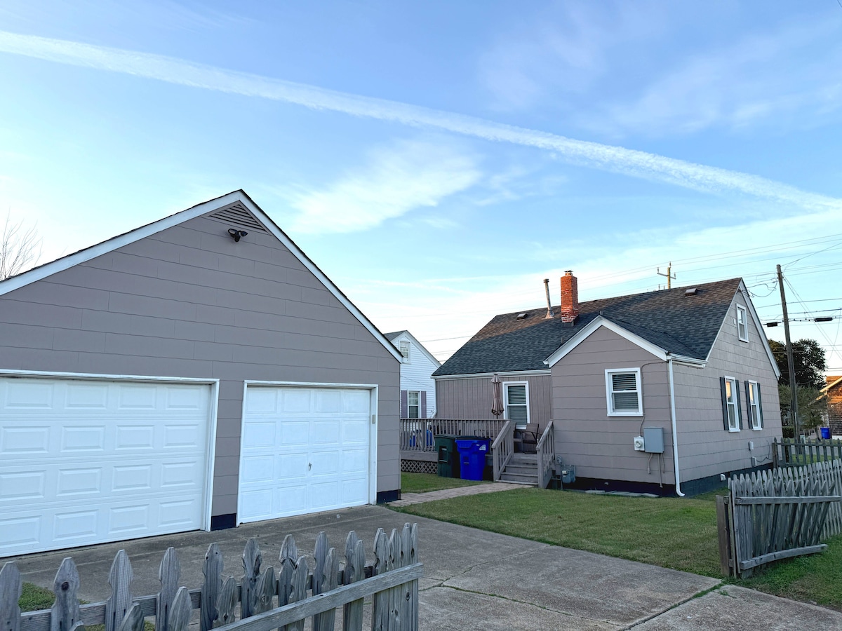 Great home for days at the beach and a fire pit at night! Beach access 1 1/2 blocks from the home. Heat/AC, dishwasher, w/d, and deck. Linens, bath towels, beach chairs, and beach towels are provided. Quiet family beach, bay water is calm- perfect for children. Large back yard for kids to run around, deck, and enclosed front porch. Close to Virginia Beach, Norfolk military bases and ODU, EVMS, NSU, Virginia Wesleyan, Hampton Univ. Approx 25 min from downtown Virginia Beach and W-burg.