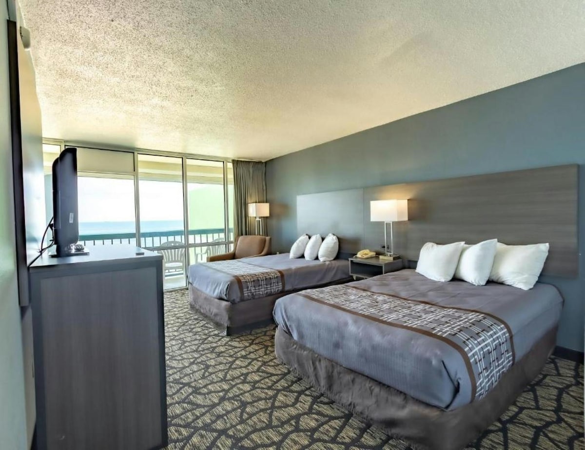 Stay steps from the ocean at Oceans 2700, just 2 blocks from Virginia Beach’s iconic boardwalk. Walk to Neptune Statue (~0.3 mi), mini golf, shops, and local eats. Drive 2 miles to the Virginia Aquarium or 3 miles to Ocean Breeze Waterpark. Perks include free Wi-Fi, outdoor pool (seasonal), in-room microwave & fridge, and complimentary parking. With 24/7 service, on-call maintenance, and food delivery, this stay keeps beach days simple and stress-free.