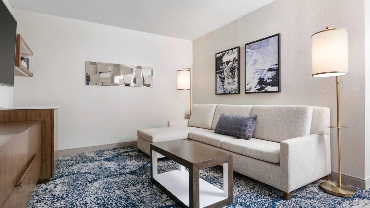 500+ Sq. Feet Suite Living Room, Full Kitchen and Separate Bedroom From enjoying your morning coffee and breakfast in the kitchen to walking down the hall and getting ready for the day in the bedroom and separate bathroom, we’ve created an environment where guests can go about their day as if they were at home. Each Unit Includes: Living room with sleeper sofa, lounge chair and 55-inch smart TV bedroom with second large smart TV, walk-in closet and work area. Entertainment package Direct TV.