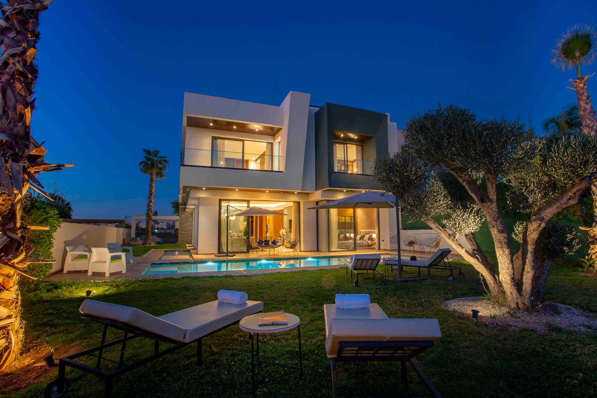 À seulement 10 minutes du centre-ville de Marrakech, la Villa LEANA est située dans la résidence golfique privée et sécurisée Argan Golf Resort, avec une vue splendide sur l’Atlas. Achevée en mars 2023, cette villa moderne vous offre le confort d’un mobilier entièrement neuf. Son architecture élégante et sa décoration soignée en font un lieu idéal pour se retrouver en famille et profiter de vacances reposantes, dans un cadre luxueux. Piscine chauffée (supplément de 250 Dhs/jour).