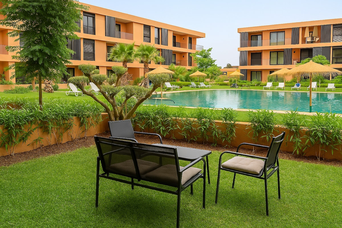 Découvrez un appartement flambant neuf alliant luxe et confort ! Cet espace moderne offre une piscine relaxante, un parking dédié, et une cuisine entièrement équipée pour votre confort. Situé dans une résidence ultra sécurisée, vous serez à proximité de nombreux services pratiques (restaurants …) et à seulement quelques minutes de l’aéroport. Idéal pour les séjours de détente ou les voyages d’affaires, ce havre de paix vous offre tout ce dont vous avez besoin pour un séjour agréable et serein.