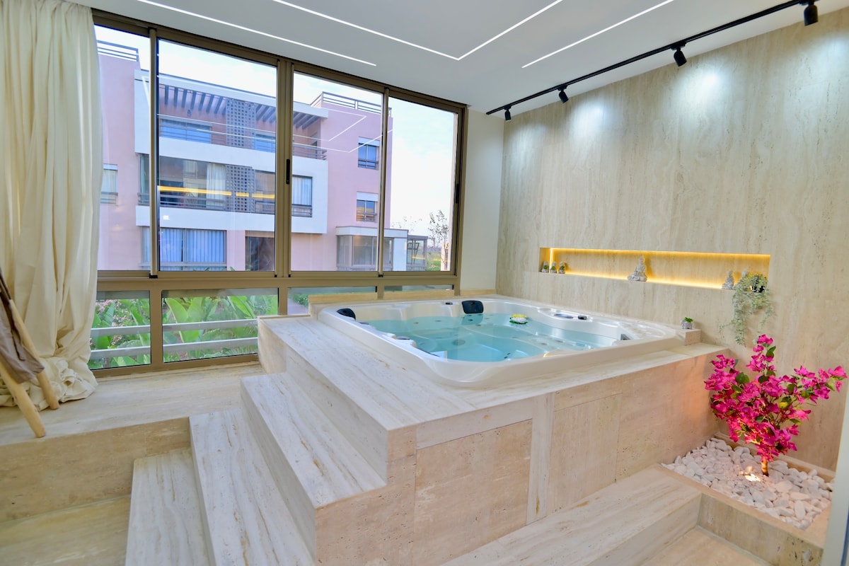 Luxury 2BR in Gueliz Center Heated Pool & Jacuzzi