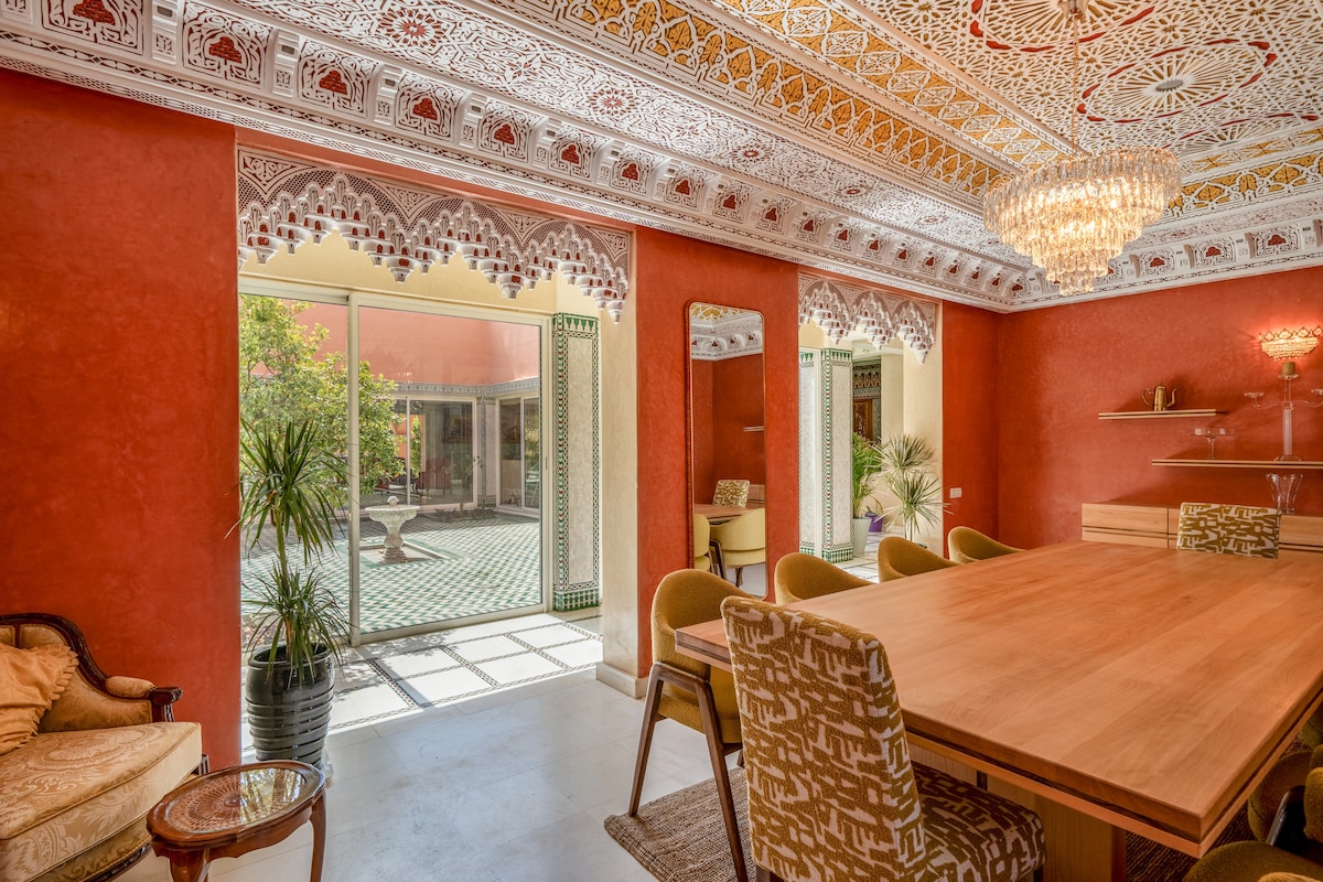 豪华传统庭院-距离Jamaa el-Fna广场2分钟-恒温游泳池
