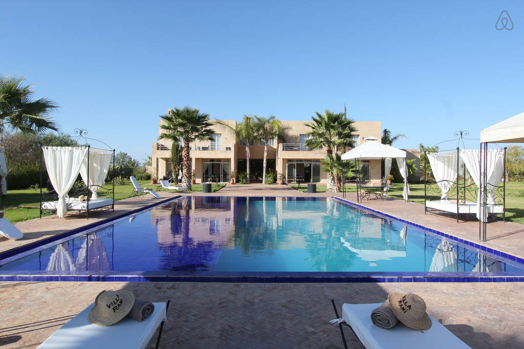 Bienvenue dans notre charmante villa au cœur de Marrakech, en première ligne de golf. À seulement 7 minutes de la place Jemaa el-Fna, 10 minutes de Guéliz et à 5 minutes de l'aéroport, découvrez le luxe de notre villa avec service de femme de ménage et cuisinière inclus dans la location. Profitez également de notre rooftop offrant une vue magnifique sur l'Atlas et les magnifiques couchers de soleil. Détendez-vous dans notre piscine privée, sans vis-à-vis, et explorez les charmes de Marrakech.