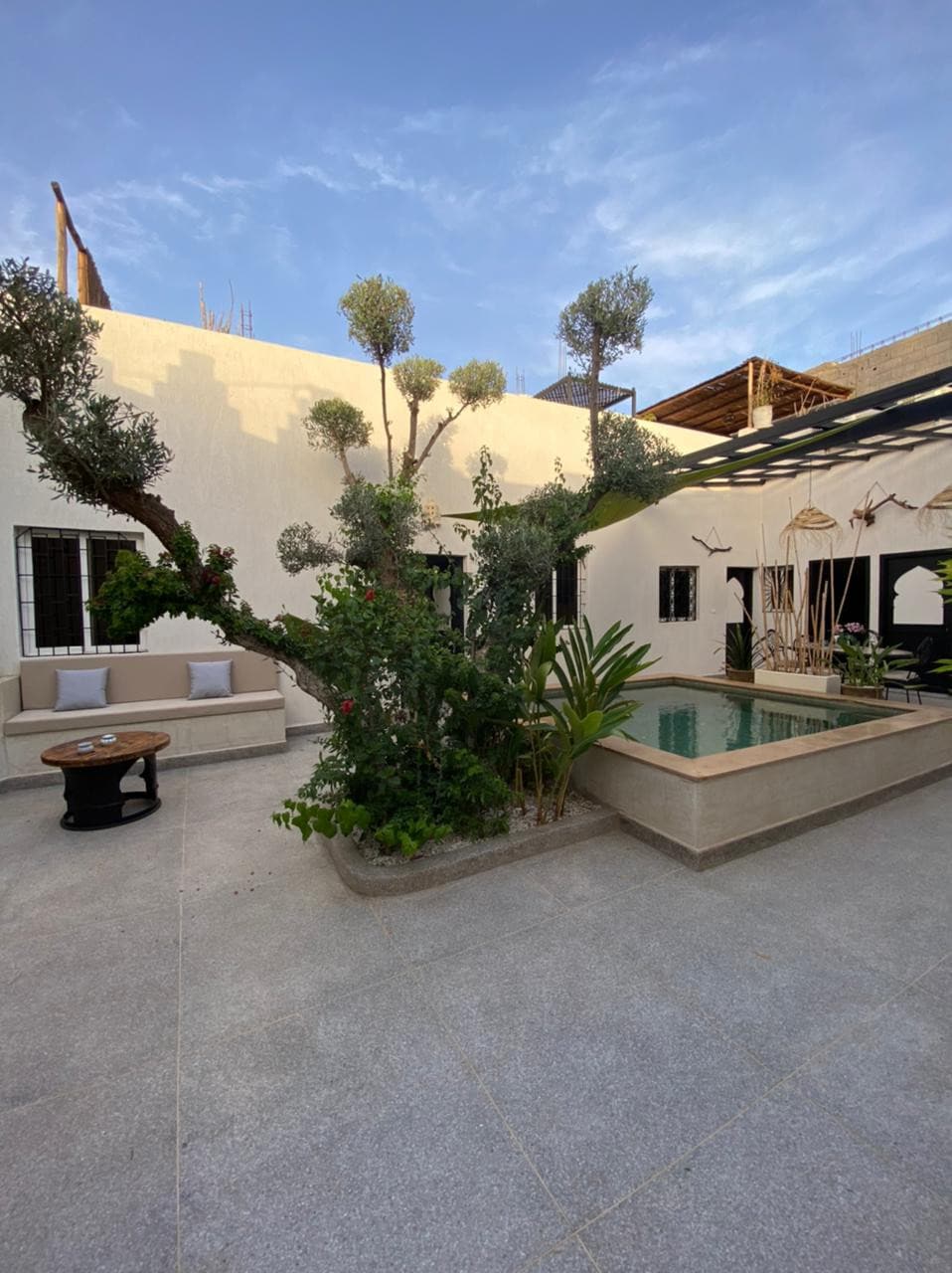 Riad privé à Marrakech pouvant accueillir jusqu’à 8 personnes, avec 3 chambres confortables, chacune avec salle de bain privée, 3 salons traditionnels marocains, un patio lumineux et paisible, une terrasse ensoleillée parfaite pour se détendre, ainsi qu’un bassin entouré d’arbres. Situé à seulement 2 minutes à pied du Mall Almazar, proche des meilleurs restaurants, et à 6 minutes en voiture de la célèbre Place Jemaa El-Fna et 8 minutes de l’aéroport. Calme, confort et authenticité garantis