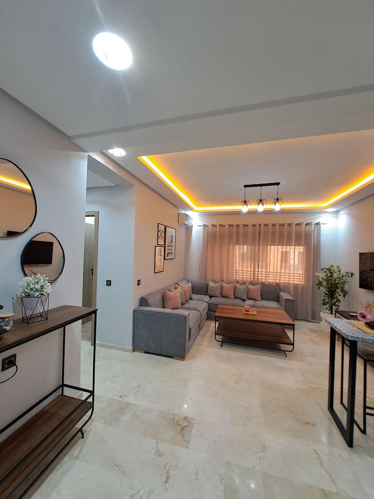 Appartement pratique et confortable, idéalement situé à quelques pas de l'entrée de l'aéroport de Marrakech. Parfait pour un séjour de vacances, les voyageurs en transit, les séjours professionnels ou les départs tôt le matin, cet hébergement offre tout le nécessaire pour un séjour agréable. Profitez d’un espace propre et bien aménagé, équipé d’une TV Smart , du Wi-Fi haut débit. À proximité des commodités et des transports, cet appartement est votre point de départ idéal à Marrakech.