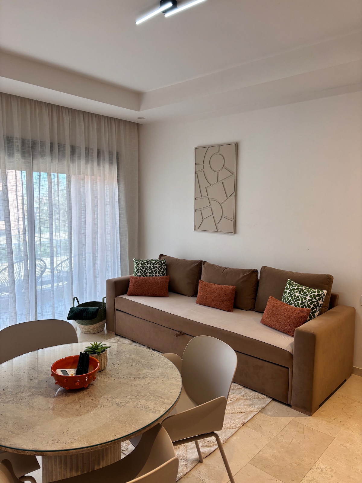 Séjournez en plein cœur de Marrakech dans notre appartement 2 chambres et 2 salles de bain. Profitez d'Une literie Simmons haut de gamme, WiFi haut débit (fibre optique) et d'une décoration moderne avec un bassin privé. Cuisine entièrement équipée, baignoire élégante, et douche italienne. À quelques pas de la place Jemaa el-Fna, du Plazza, et du Carré Eden. La piscine n’est pas chauffée. NB: Les couples marocains non mariés ne sont pas autorisés.
