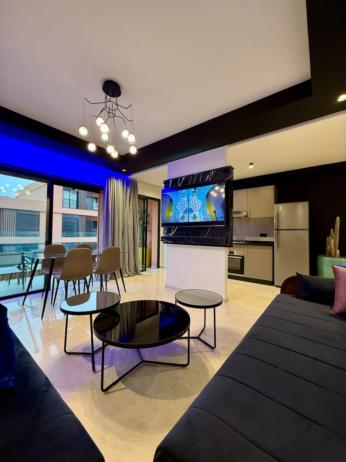 Séjournez en plein cœur de Marrakech dans notre appartement 2 chambres et 2 salles de bain. Profitez d'Une literie Simmons haut de gamme, WiFi haut débit (fibre optique) et d'une décoration moderne avec un bassin privé. Cuisine entièrement équipée, baignoire élégante, et douche italienne. À quelques pas de la place Jemaa el-Fna, du Plazza, et du Carré Eden. La piscine n’est pas chauffée. NB: Les couples marocains non mariés ne sont pas autorisés.