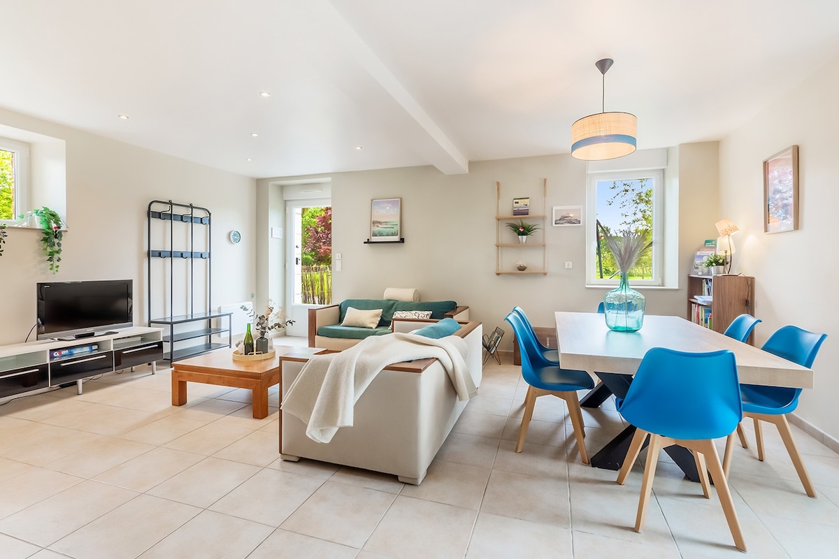 Gîte ⭐️⭐️⭐️ officielles. Situé dans un village classé patrimoine historique à 4 km des Plages du Débarquement, votre logement se situe dans une ancienne grange entièrement rénovée avec des matériaux naturels et aménagements de qualité. Baigné de lumière avec ses grandes baies vitrées et sa mezzanine, ce gîte jumelé est idéal pour les familles et groupes d’amis en quête de calme et détente. Terrasse dédiée avec coin jardin + jardin partagé avec table de ping-pong, parking gratuit clos (1 place).