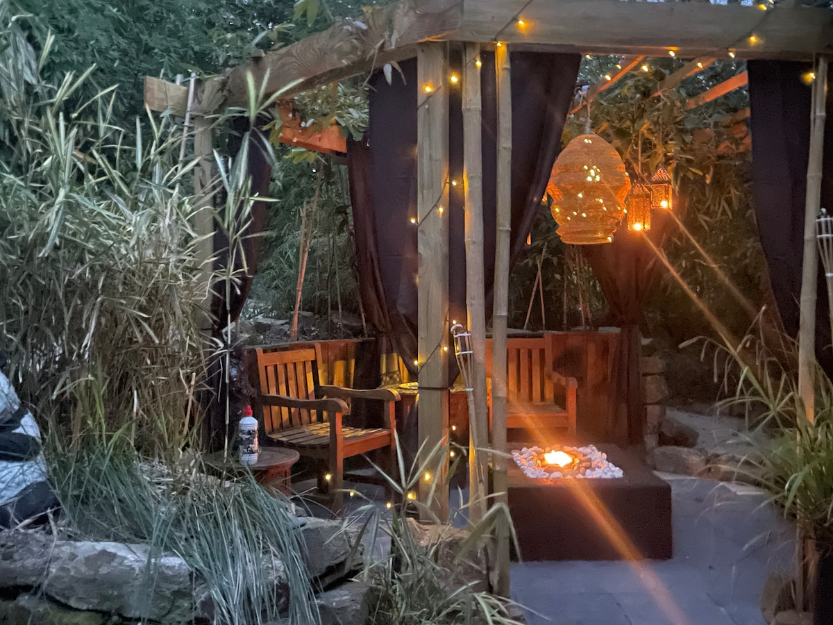 带按摩浴缸和火盆的漂亮露营地