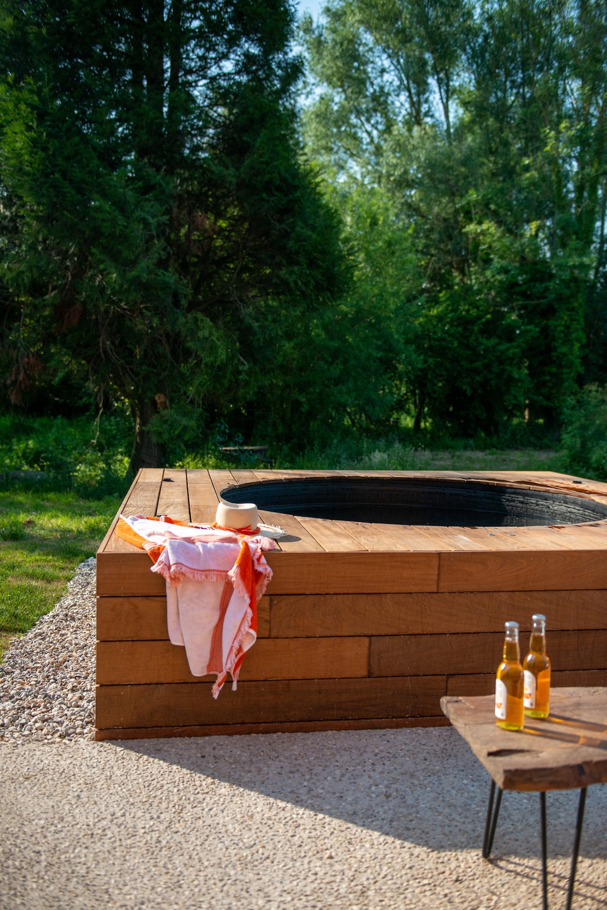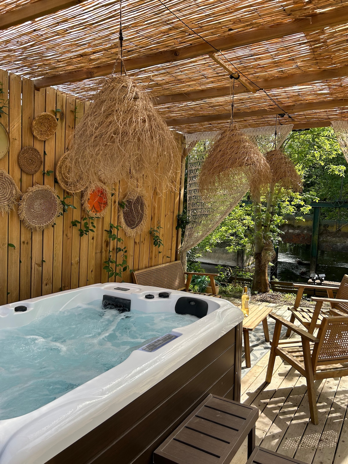 带户外按摩浴缸的水畔度假木屋