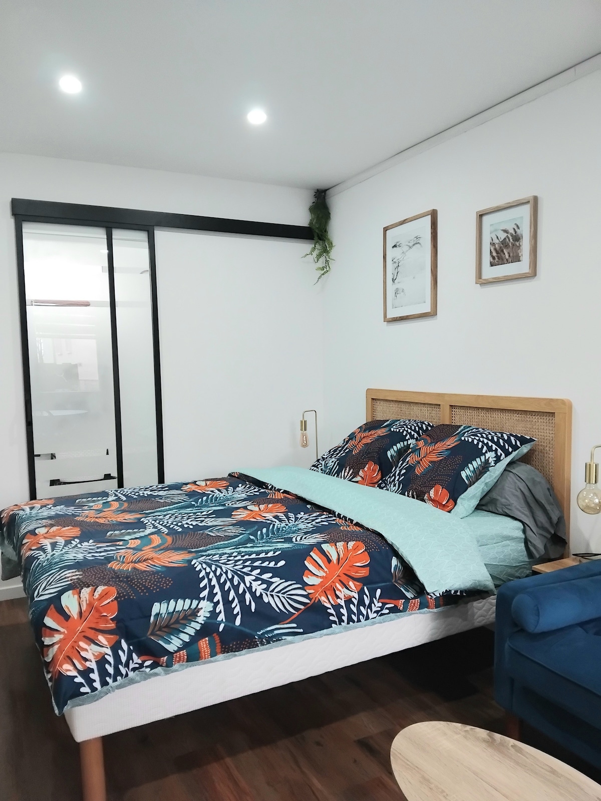 Dans le coeur de ville de Oissel, rue calme, à 2mn à pieds des commerces et 10mn à pieds de la gare (ligne Paris-Le Havre). Dépendance de 50m² sur 2 niveaux (ancienne écurie), complètement rénovée et équipée pour 4 personnes. Décoration "champêtre scandinave". Petite terrasse privée mais accès aussi aux espaces communs de fitness et spa. Parking dans cour fermée et appentis pour moto et vélo.