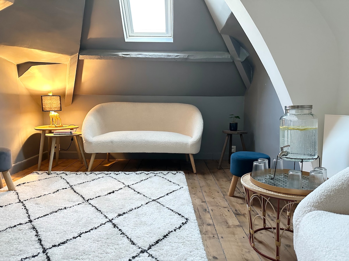 La Villa Jade est un hôtel-boutique conçu par Les Turquoises Étretat. À moins de 150 mètres de la mer et des falaises, vous serez charmés par cet endroit confidentiel et artistique. Au rez-de-chaussée, vous trouverez l’unique coffee shop japonais de la ville. À l’étage, vous séjournerez dans une suite cosy et décorée avec soin. La salle de bains privative est à l’intérieur de la chambre. Au dernier étage, à disposition des clients, il y’a un salon détente ainsi qu’un espace bureau. Bienvenue :)