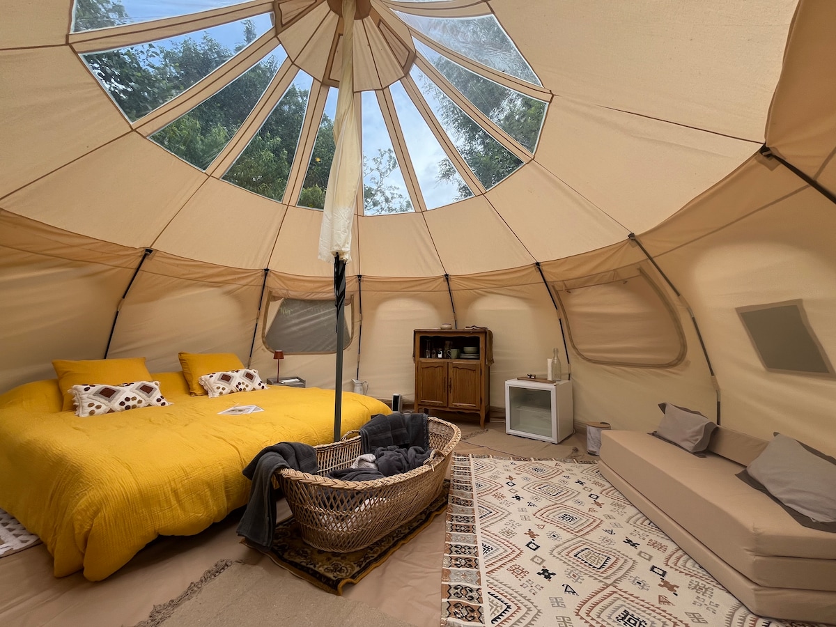 Ressourcez-vous dans un logement insolite, au calme, en pleine nature. Vous vivrez une expérience incroyable dans cette tente spacieuse et confortable située, pour votre sécurité et vos commodités, à toute proximité du corps de ferme. En plus du logement, vous pourrez prendre part, si vous le souhaitez aux activités de saison. Vous pourrez choisir de vous laver en extérieur et d'utiliser des toilettes sèches privatives ou profiter des sanitaires directement accessibles au r-d-c de la ferme.